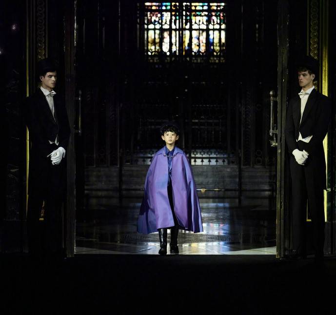 搜狐娱乐讯 9月25日,蔡国庆分享儿子时装周走秀照片。图中,蔡国庆儿子与一众明星嘉宾合照,穿着蓝色斗篷时尚可爱。