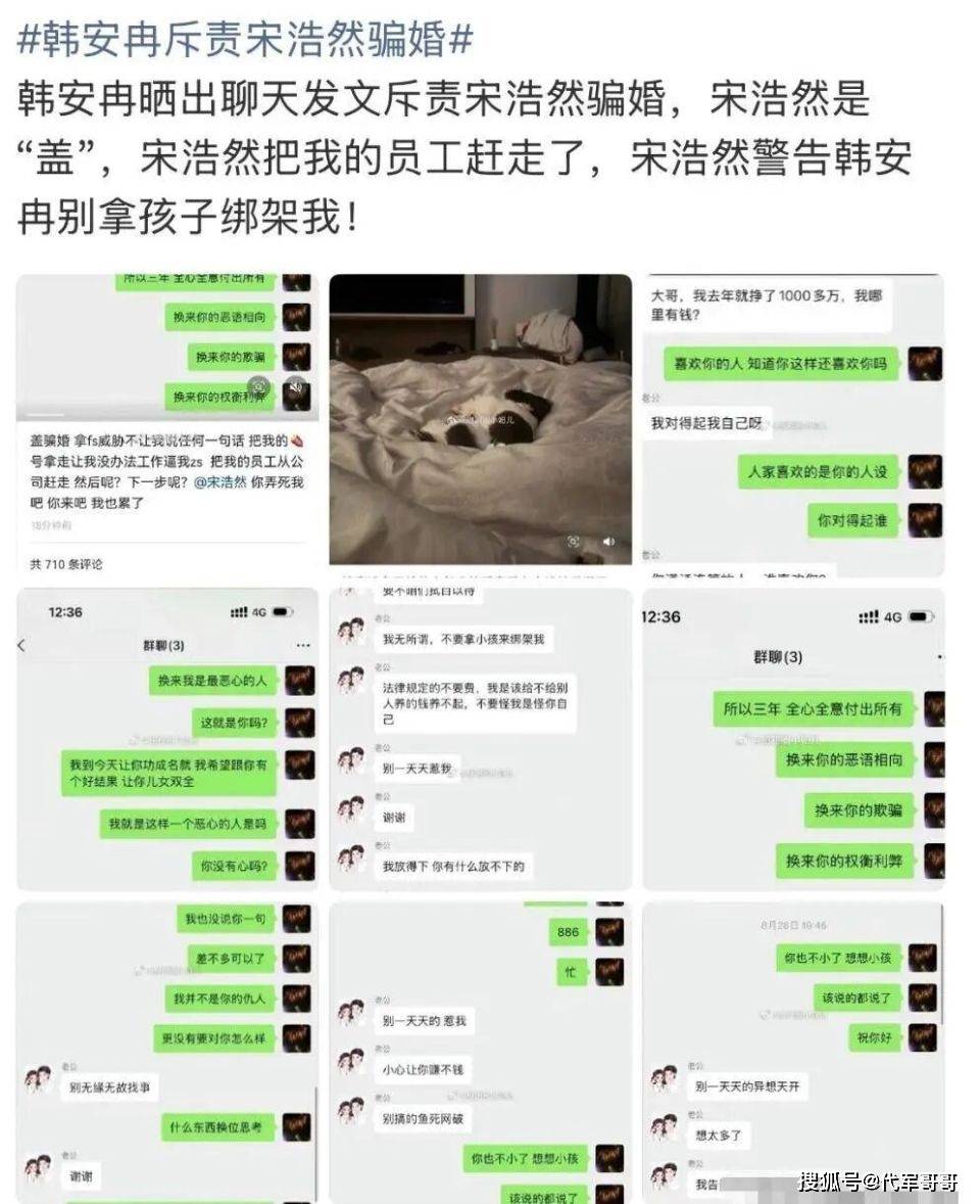 韩安冉在长文中详细描述了事情的经过。她称在自己怀着二胎优米的时候,偶然间发现宋浩然的手机里有一些与男的聊天记录。聊天内容十分露骨,两人不仅互相称呼亲昵,还频繁约见面。韩安冉当时犹如五雷轰顶,怀着孕的她情绪崩溃,整日以泪洗面。为了证实自己的说法,韩安冉还晒出了部分聊天记录截图作为证据。从截图中可以看到,宋浩然与该女子的聊天时间大多集中在韩安冉孕期,聊天内容充满了暧昧和暗示。