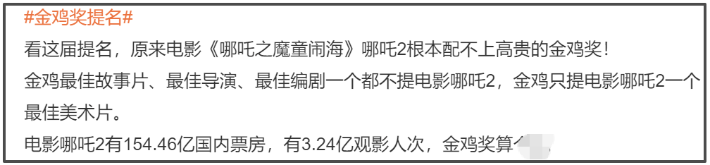 另外,横扫春节档狂揽150多亿票房,备受不少观众好评的《哪吒之魔童闹海》,只获得了最佳美术片提名,网友感到很遗憾,甚至纷纷替导演饺子鸣不平,直言他值得一个提名。