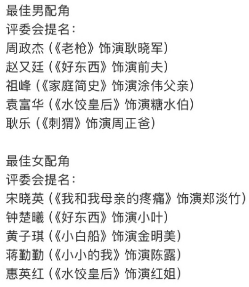 在诸多奖项中,从来最受关注的都是演员奖项,特别是最佳男主角和最佳男主角。看完今年的入围提名名单,网友有种说不出的感觉,虽然提名者都算有名气也有实力和作品,竞争也算激烈,但总感觉水平还不够高。
