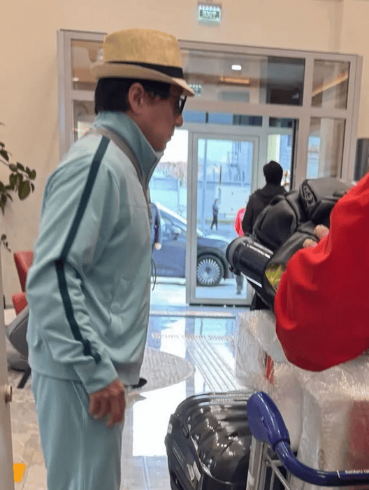 成龙9月23日现身阿拉木图机场,图源:乌兹别克斯坦新闻网“Kursiv Media”引自社交媒体