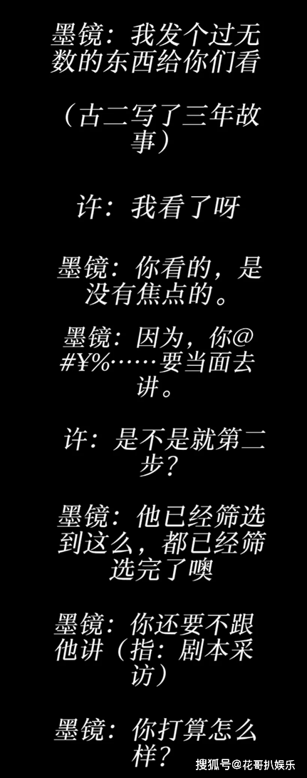 更尴尬的是,古二和秦雯初次见面,是在一屋子业内人士的饭局上,男主胡歌也在。墨镜王让所有人都给古二敬酒,因为他把秦雯写烂的剧本救活了。古二当时还挺高兴。