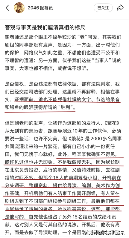 但也有小演员出来说,古二确实为剧本做了大量且细致的工作,如果他当初没走,剧本会更精彩。