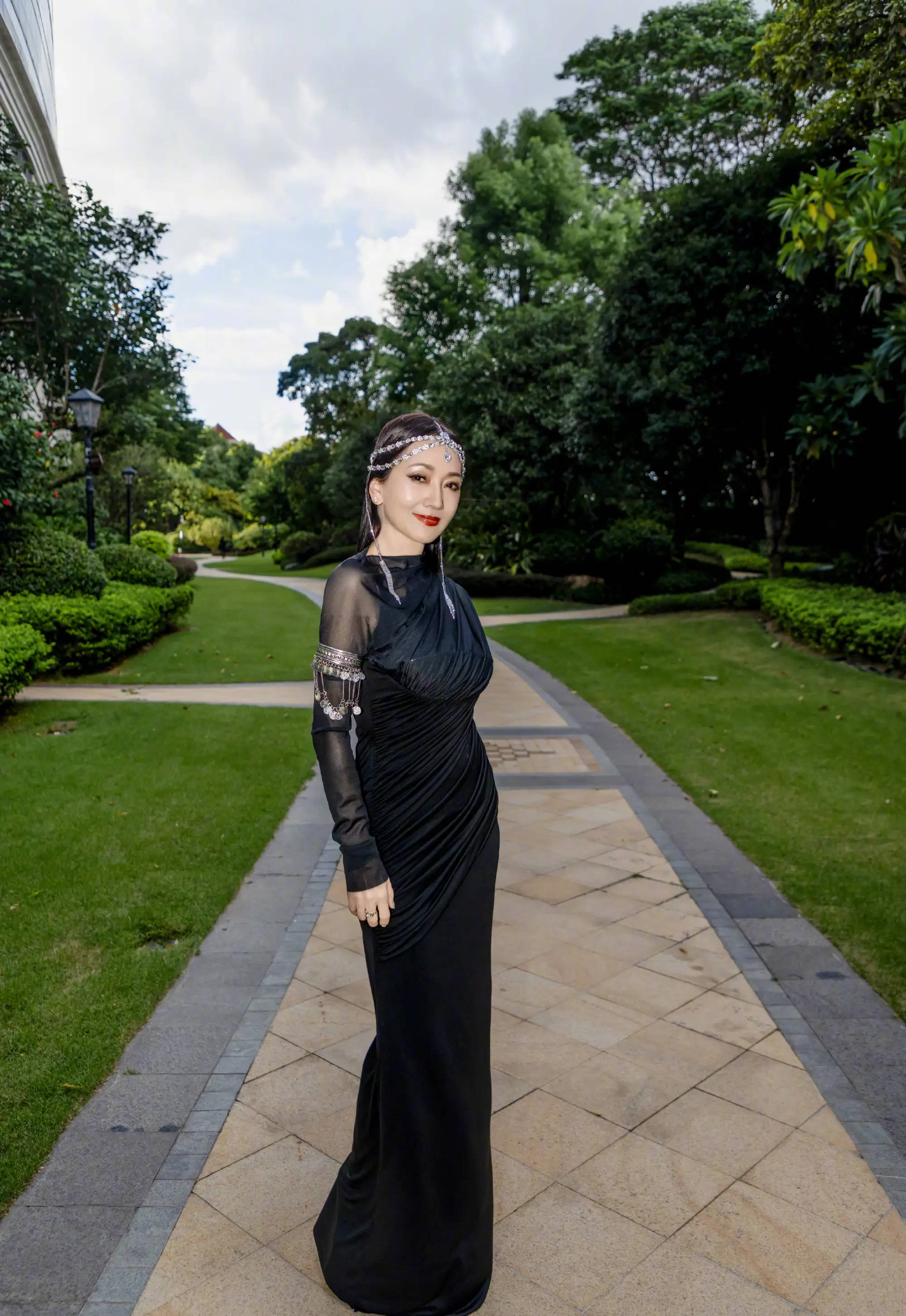 赵雅芝穿着黑色长裙尽显端庄大气,搭配闪亮头饰更添精致感!