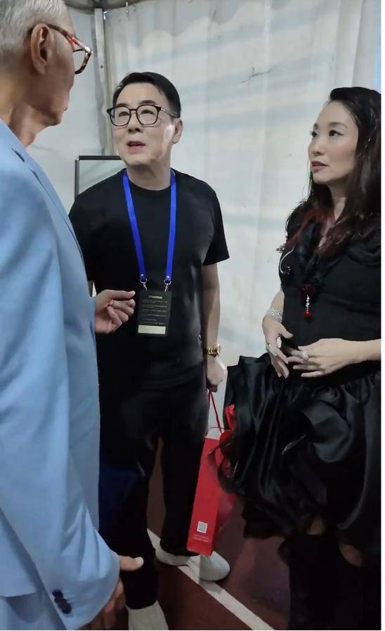 从影片中可见,许秋怡当日身穿黑色裙子,在后台正与林俊贤热聊,从影片看许秋怡当日的状态很好,一点也不像近60岁的人。