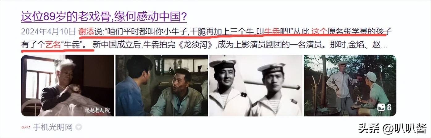 后来恩师谢添给取了牛犇这个艺名,希望他能一直奔跑一直奋斗。