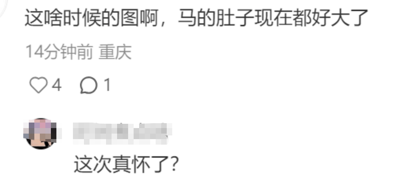 不知是不是穿着宽松裤子的原因,马筱梅的身形走样,肚子微微鼓起,看着孕味十足。因此评论区不少网友纷纷猜测女方可能有喜了。