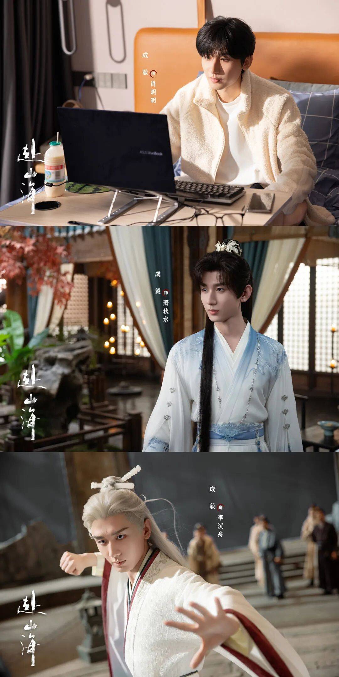 剧情中,成毅在剧中一人分饰三角,包括现代打工人肖明明、少年侠客萧秋水及江湖城府颇深的李沉舟。这三个角色性格差异较大,在成毅娴熟的演绎下,各有千秋,切换自如。