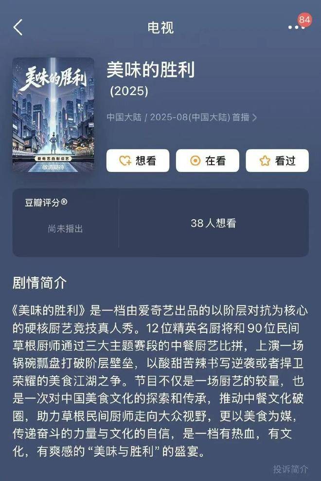 待播的《美味的胜利》若想破局,或许该学学中华料理的精髓——文火交替:专业度作骨,人情味为髓,用慢功夫熬出真正的中餐美学。毕竟在流量为王的时代,能让人暂停快进的手指认真看一道红烧肉如何收汁的节目,才是真正的"下饭神器"。