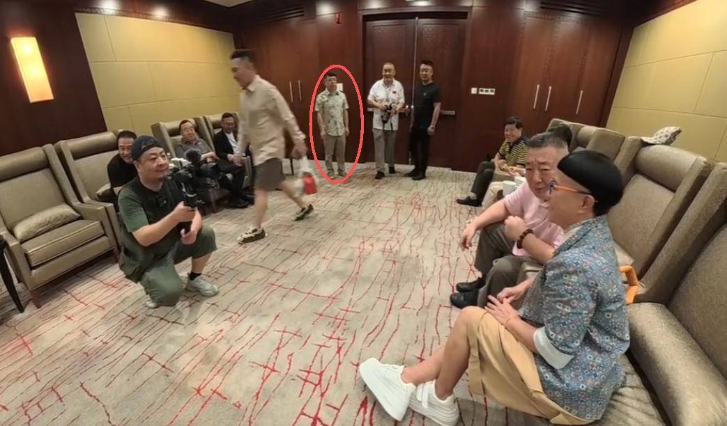 他站在水均益的背后,手足无措,眼神飘忽,一脸“卑微”的样子,很难想象他是当年意气风发的央视主持人。