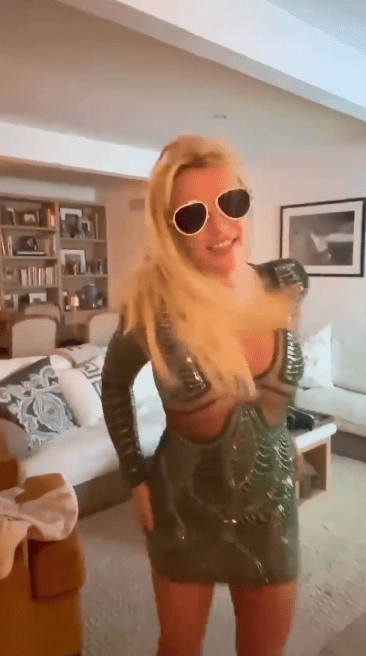离婚对布兰妮是一种解脱,她自己很开心。所以这次邀请了很多男性好友来家里玩,布兰妮说,“我穿上绿色的裙子在朋友前闪亮登场!邀请了我最喜欢的男孩来玩了一整晚!”