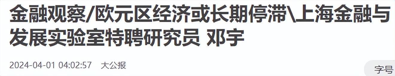 大公报:《金融观察/欧元区经济或长期停滞\上海金融与发展实验室特聘研究员 邓宇》
