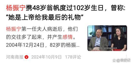 参考信息:1、中国教育新闻网:杨振宁:一片丹心献中华2、河南商报:杨振宁携48岁翁帆度过102岁生日,曾称:“她是上帝给我最后的礼物”3、百度百科:杜致礼