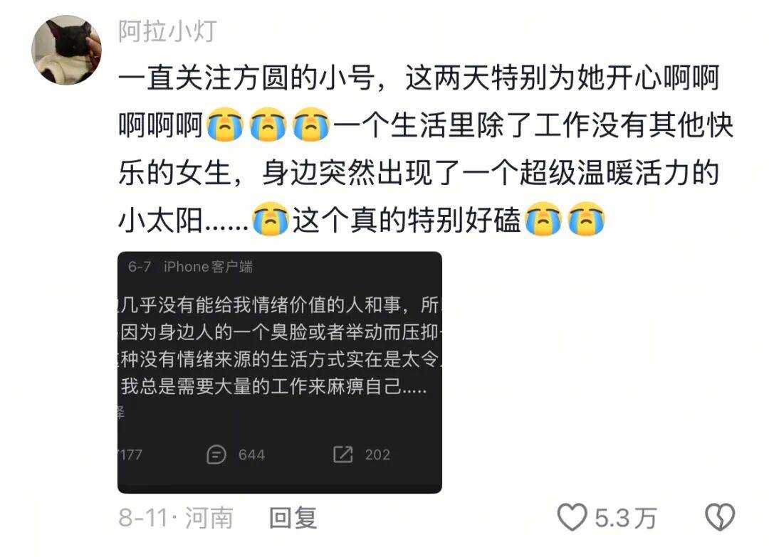 除了反差与真实感,方圆与阿爆联动能持续引爆流量的深层情绪,在于她们共同创造的“新故事”令人感到幸福。这也正是许多网红选择联动的原因。