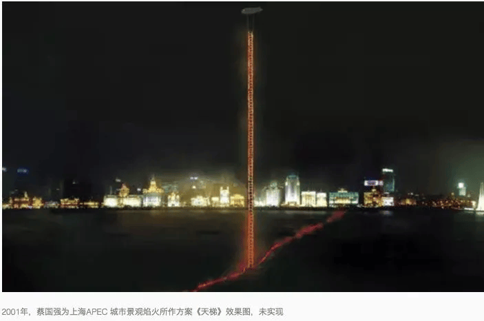 当然最著名还是他的代表作《天梯》,蔡国强的设想是从地面一路炸到天空,意义是“连接地球和宇宙的梯子”。