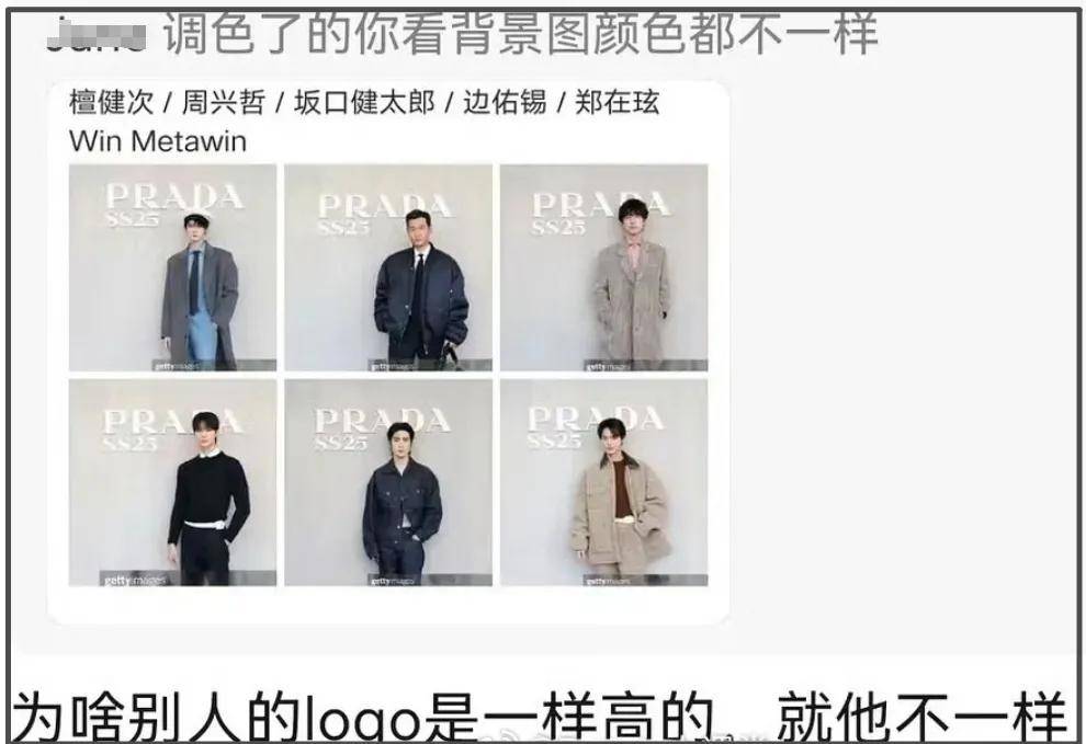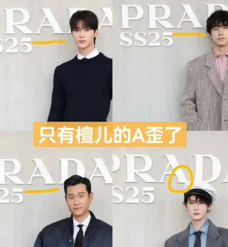 檀健次参加Prada男装秀,品牌返图只有他头上的logo歪了。