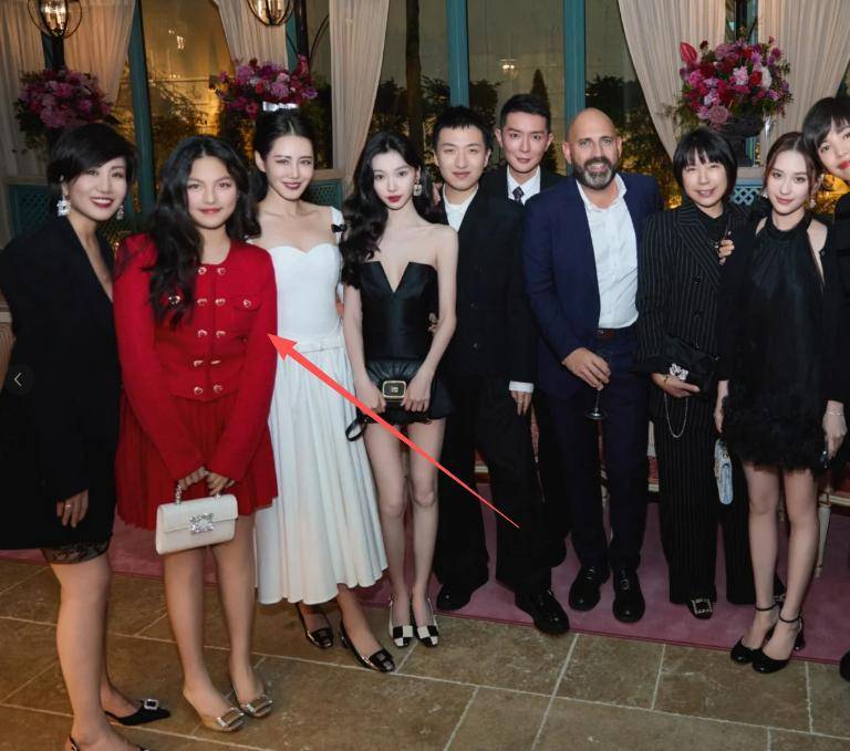 一身玫红色长裙加身的李湘,站在王诗龄旁边更像是一个“贵妇”。