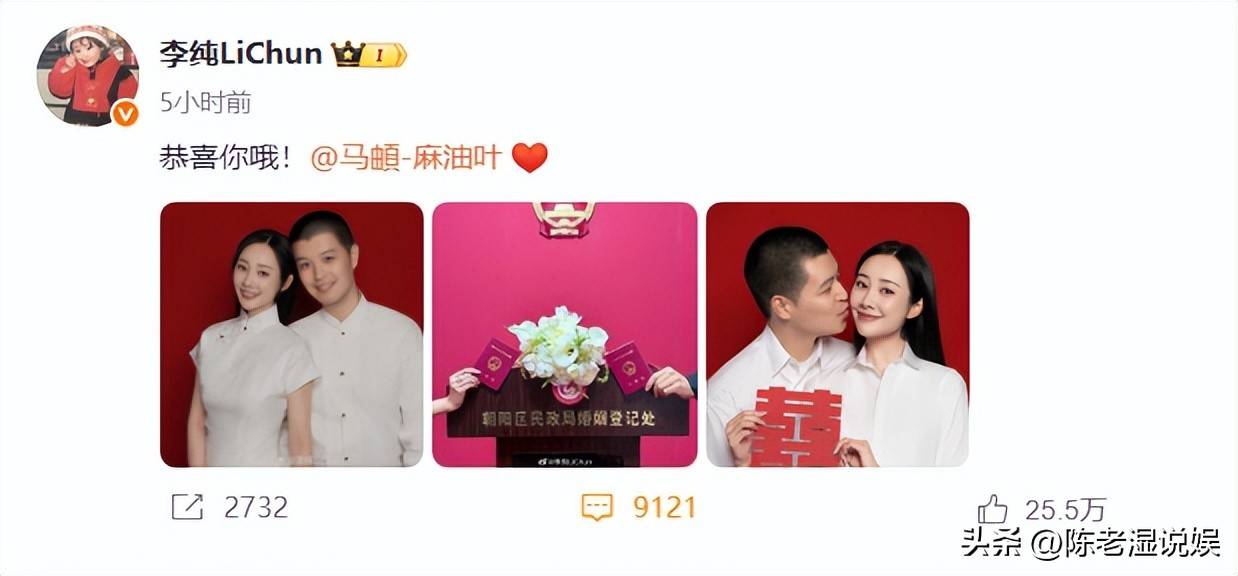众人看到李纯和马頔结婚的消息,都在评论区留下了自己的祝福。
