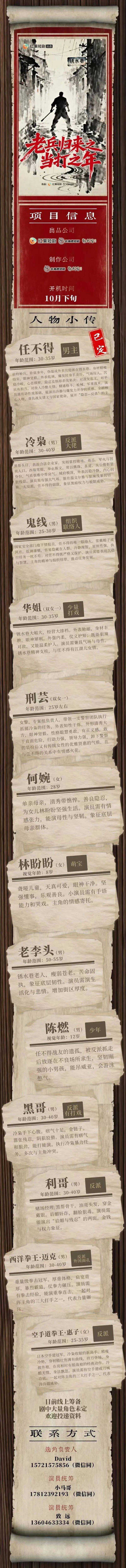 免责声明:戏客Seeker公众号(“本平台”)中全网组讯的信息、内容(“组讯信息”,包括但不限于影视项目名称、项目介绍信息、出品公司信息、导演信息、选角团队信息、拍摄相关信息、联系方式等)均来源于内容信息相关方提供或互联网公开信息。本平台不对组讯信息的真实性、准确性、完整性、及时性、关联性、适用性及安全性提供任何明示或默示的担保。请您谨慎参考或使用组讯信息,并确保您的人身、财产安全,本平台不对您使用或参考组讯信息而造成的后果承担任何责任。