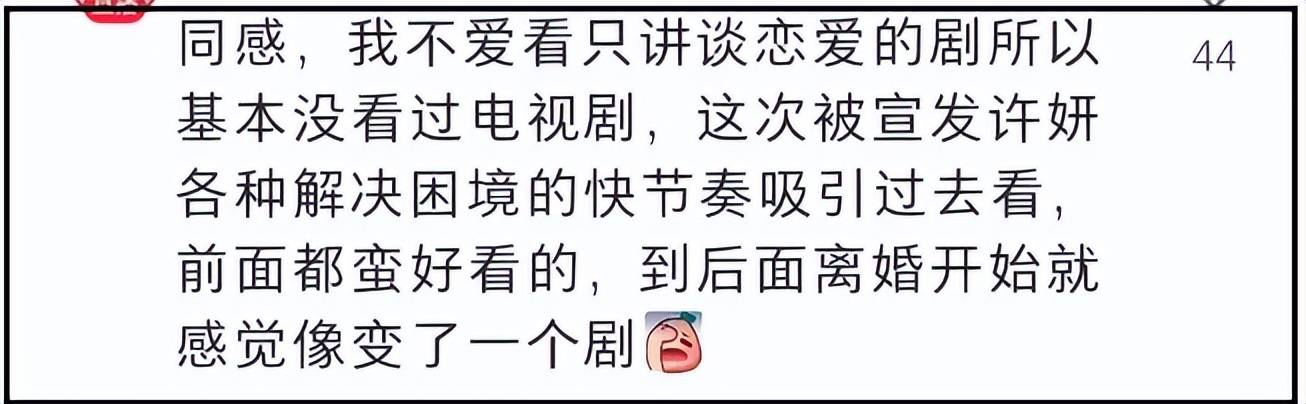 除了被质疑抄袭之外,《许我耀眼》播出过半后,基本彻底沦为了降智偶像剧。从前几集的恶女上位戏码,画风突变为甜腻的无脑偶像剧。特别是女主创业,女主追妻等剧情,让不少观众直言看不下去,准备弃剧。