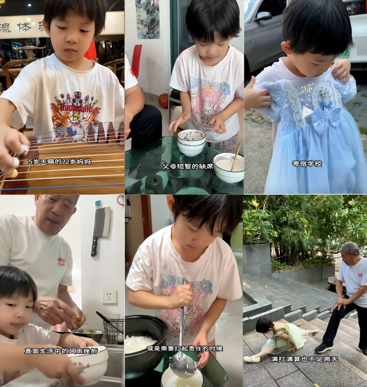 练习古筝、盛饭、收拾碗筷、做家务、上寄宿学校、做劈叉......这是为了流量?还是作秀?或者是小天赐真的喜欢?