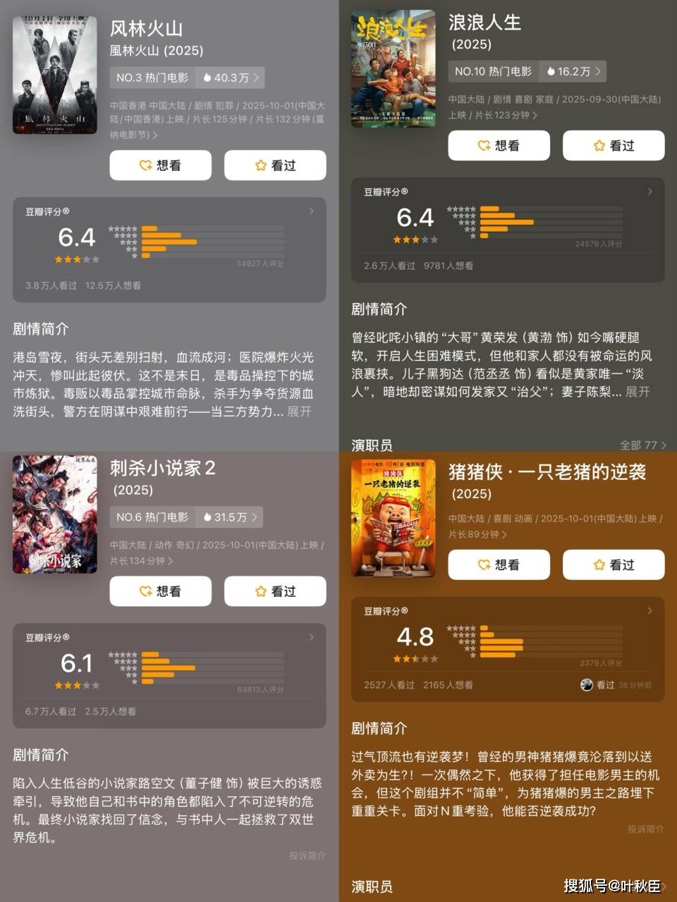 也许是因为叶秋臣此前写过一篇《2025年国庆档电影盘点:这11部作品里,你最想看哪一部?》的文章做了摸底,评论区里点赞量最高的评论就是“一部能看的都没有”,所以我对这个最终结果并不意外。