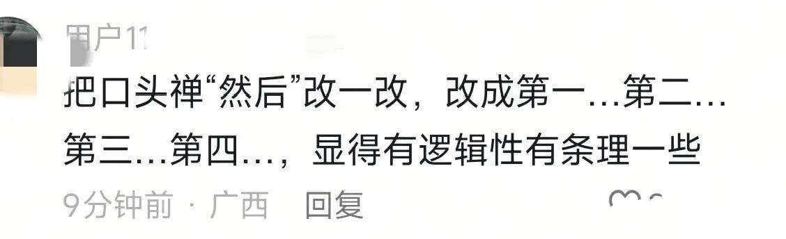 也有网友提供了一个更有效的方式,就是把口头禅“然后”改成第一、第二、第三,这样就会显得更有逻辑性、也更有条理性了。