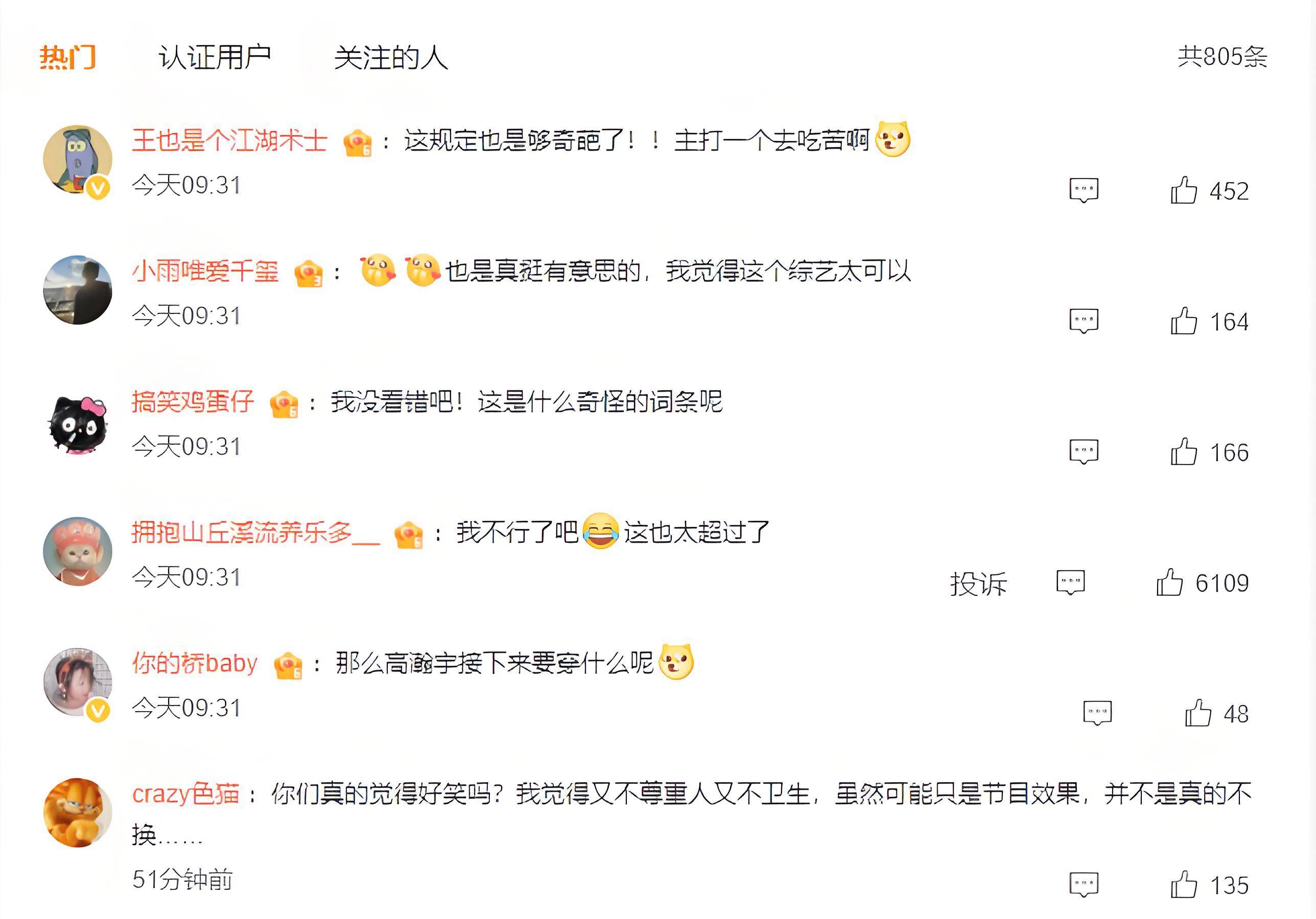 节目组的骚操作直接令人瞳孔地震:6个人总共只能带80件物品,连内裤都要单独计数。一场关于贴身衣物的"生存战争"就此打响。