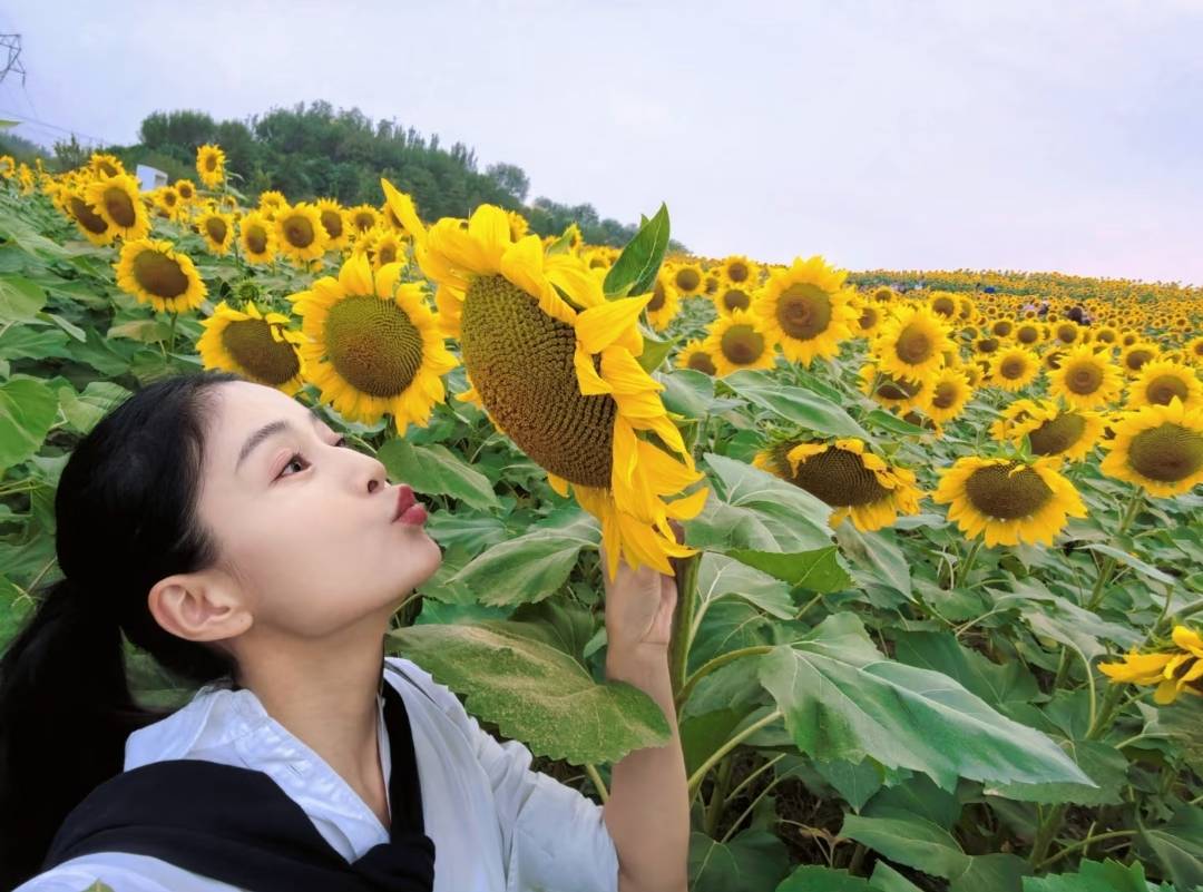 王媛可还带着家人去山上看了向日葵花海。照片里的她笑得一脸灿烂,双胞胎儿子站在她身后,长得是又高又壮,身高已经超过妈妈王媛可了,虽然看着有点胖,但五官长相还是很帅的。