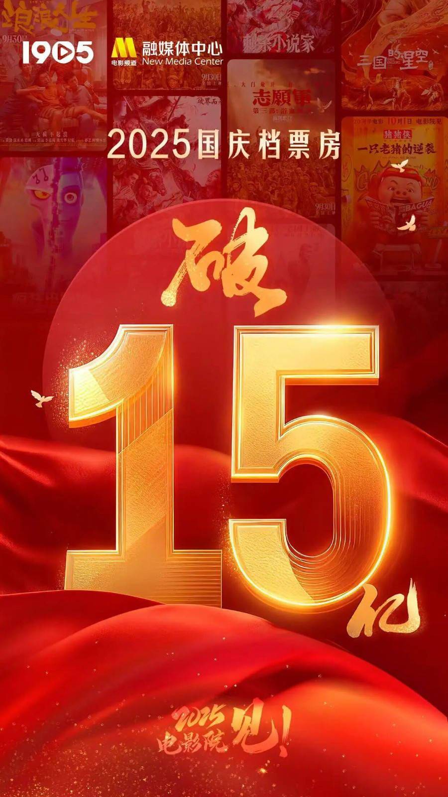 1905电影网专稿截至发稿,2025年国庆档总票房破15亿,、、分列前三位。