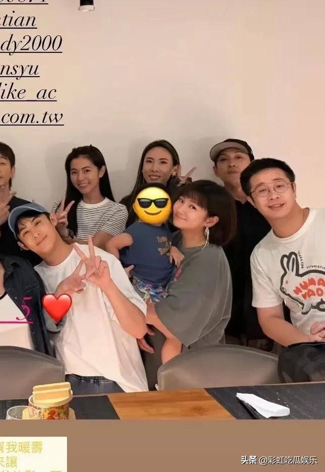 10月11号,任家萱晒和朋友的聚会照片,朋友过生日开了派对,任家萱抱着儿子小腰果带着男友一起参加。