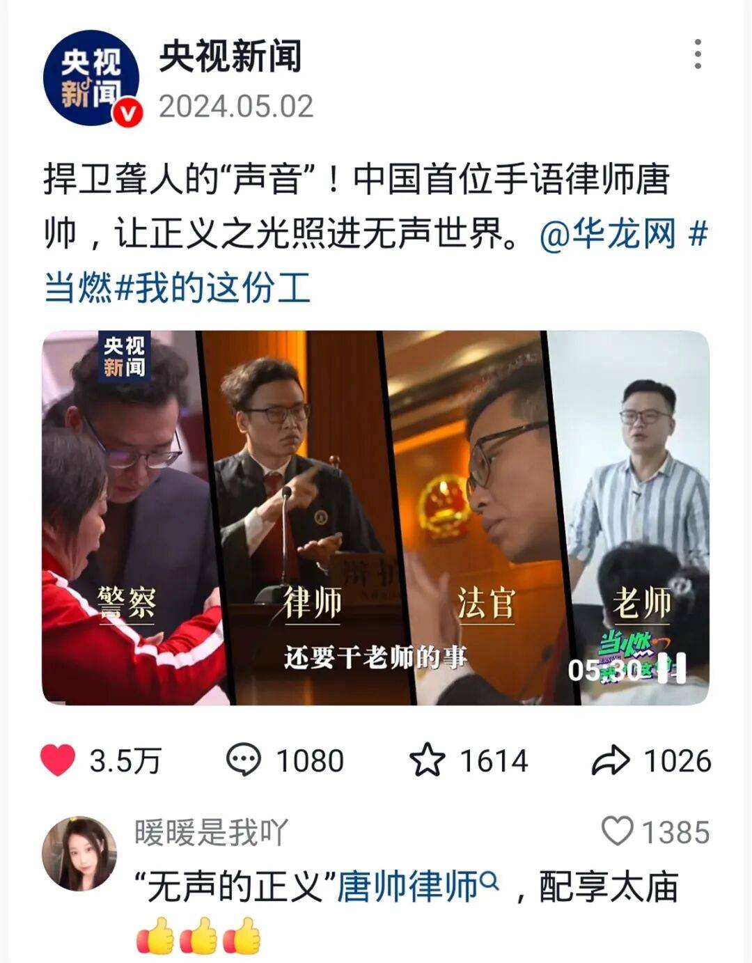 他一战成名,被官方誉为“中国手语律师第一人”。