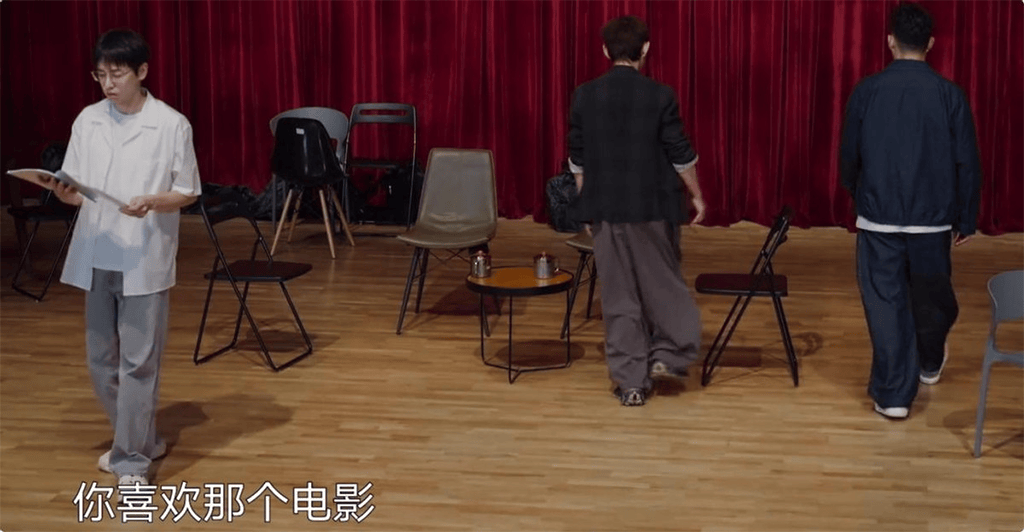 镜头切换之后,就看见他们正对着剧本不住地称赞:“这台词真有韵味”,我立刻意识到:厨房里的火虽已熄灭,但舞台上的气氛却愈发热烈起来,这个节目名为《向往的排练》,倒也十分贴切。