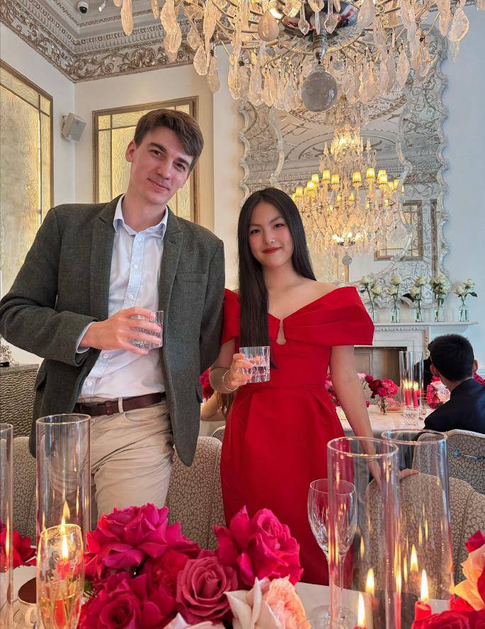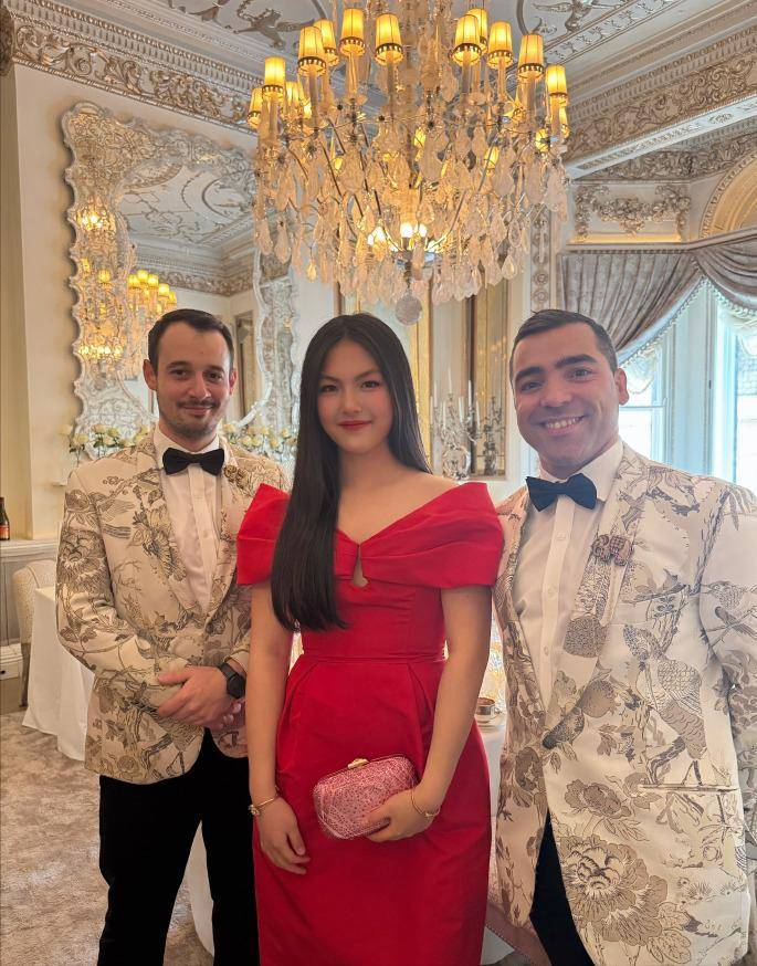 李湘晒出的照片中,第一张就是父女俩的合影,王岳伦把母女俩的合影放在最中间,照片中,王诗龄身穿大红色一字肩礼裙,脚穿黑色高跟鞋,一身打扮非常喜庆,王岳伦盛装出席,西装配领带尽显对女儿生日的重视,不得不说,父女俩越来越像,王诗龄即像妈又像爸。