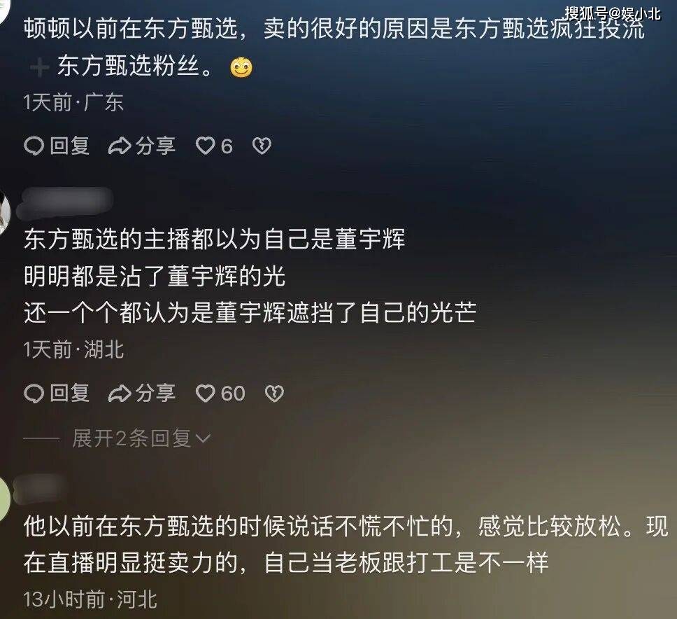 对比如今的顿顿,光有自立门户的“病”,却没有董宇辉的命。