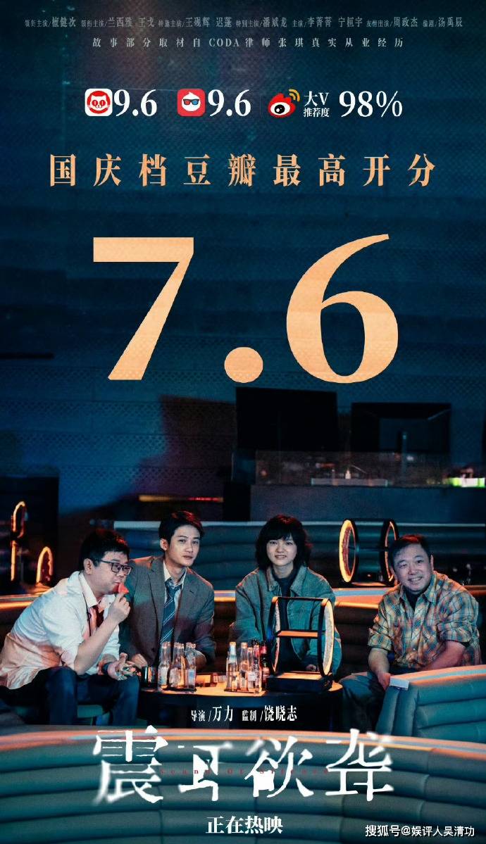 檀健次主演的电影《震耳欲聋》,豆瓣开分7.6,是今年国庆档最高分,同时也是今年国产真人电影豆瓣开分第四高,仅次于《戏台》《捕风追影》《南京照相馆》,也是国庆档所有电影评分人数最多的。截止到2025年10月12日下午,《震耳欲聋》的票房突破2亿,算是一匹黑马。