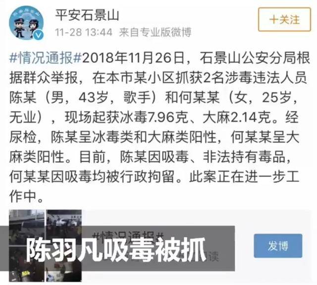 2018年11月28日,一则消息如一颗重磅炸弹,震惊了整个娱乐圈:陈羽凡因吸毒被警方抓获 。