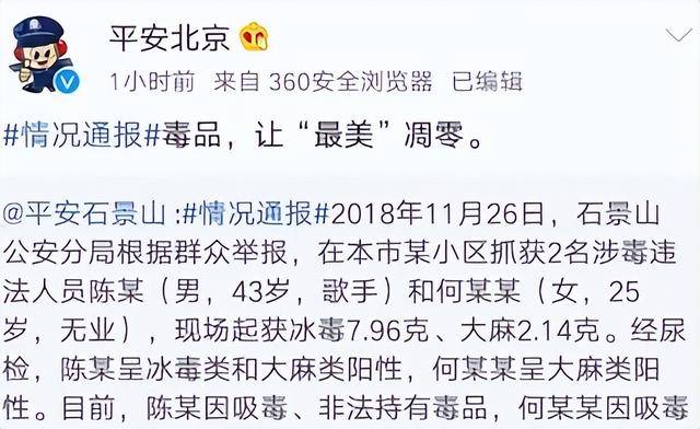 但不到两个小时,北京警方的官方通报就狠狠打脸,证实了陈羽凡吸毒的事实 。平安北京转发通报时,还配上了意味深长的文字:“毒品,让‘最美’凋零” 。