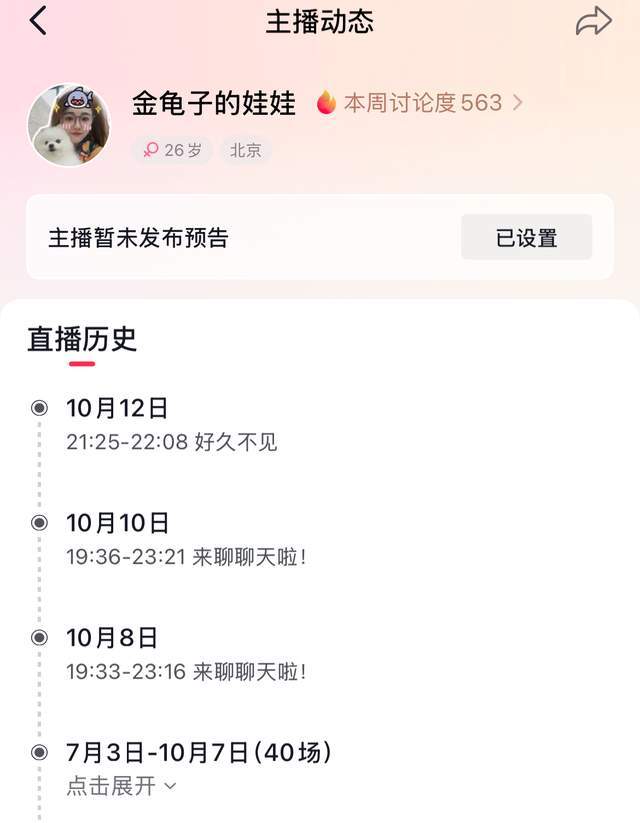 据了解,娃娃是在补办婚礼期间官宣的二胎,此后的时间里,她并没有按时休息,反而是在每晚的7点到11点如约开启直播,从7月3号开始一直到10月7号,三个月的时间,播了40场。