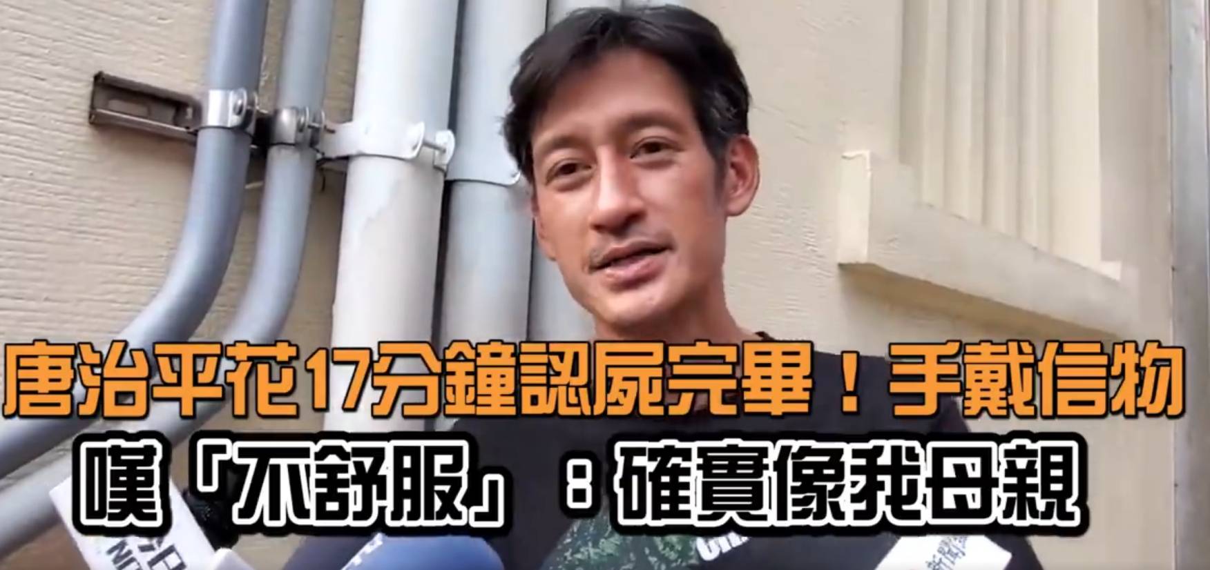 搜狐娱乐讯 7月29日,此前一直拒认母亲遗体的唐治平,今日前往板桥殡仪馆认尸,这次他承认遗体像母亲:“这次看起来像是我母亲,心情当然是难过”,“那具尸体面孔确实蛮像我母亲的,我觉得相当不舒服”,他还提到今天戴着母亲的结婚戒指作为“信物”来殡仪馆认尸。