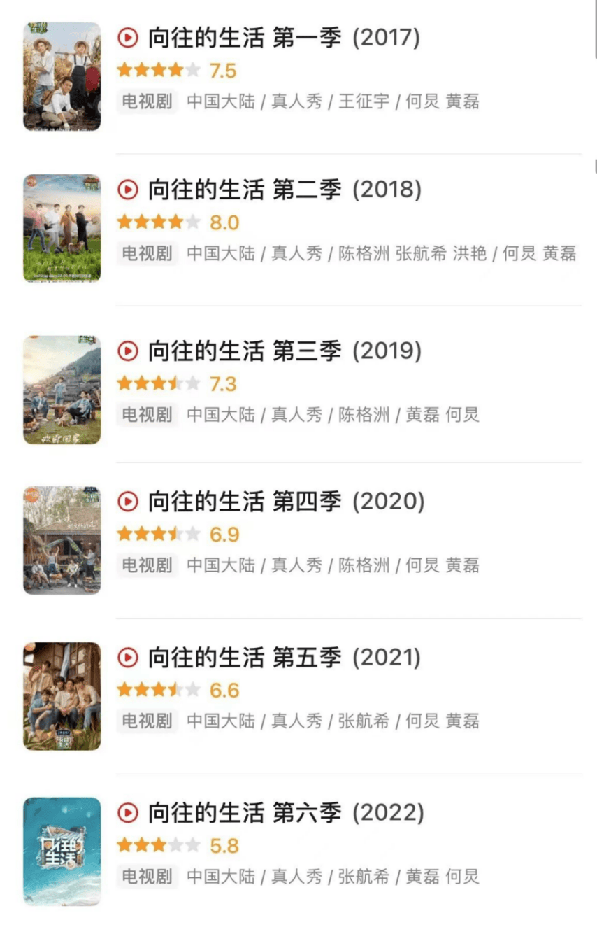 正因为此,《向往的生活》评分逐渐下滑,最终到了第七季宣布停播。