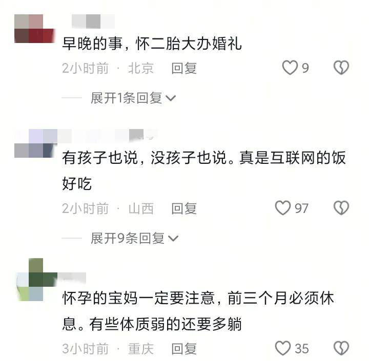 两个月前才补办婚礼,当时娃娃透露已经有了二胎,两边老人开心不已。