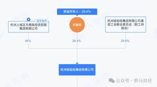 值得注意的是,虽然辞去了董事长等职位,但宗馥莉依然是娃哈哈集团第二大股东,持股比例29.4%。此外,杭州上城区文商旅投资控股集团有限公司和杭州娃哈哈集团有限公司基层工会联合委员会(职工持股会)分别持股46%和24.6%。
