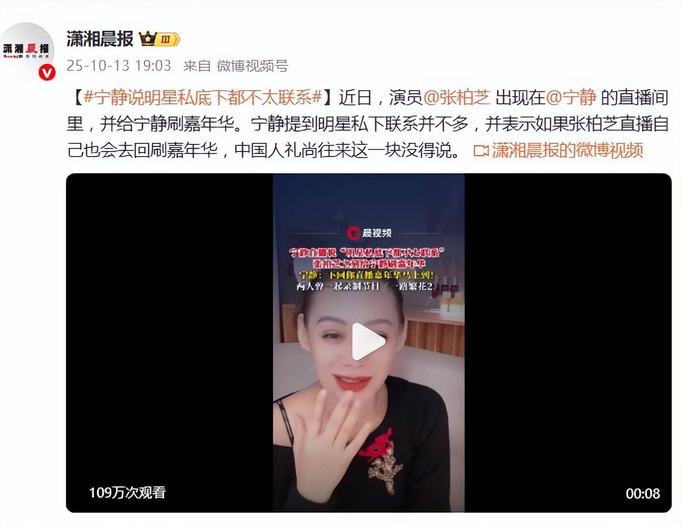 “明星私底下都不太联系”,10月11日,演员宁静在直播间轻描淡写的一句话,撕开了娱乐圈人际关系的华丽泡沫。当她与张柏芝隔屏互动时,这句看似随感的感慨,恰逢张柏芝刷来“嘉年华”虚拟礼物,瞬间将直播间化作折射行业生态的棱镜。宁静急忙笑言:“哎呀芝芝我不是要套你的嘉年华,下次你直播的时候,嘉年华马上到。”这番礼尚往来的对话,让“疏离常态”与“流量社交”在同一时空碰撞出耐人寻味的火花。