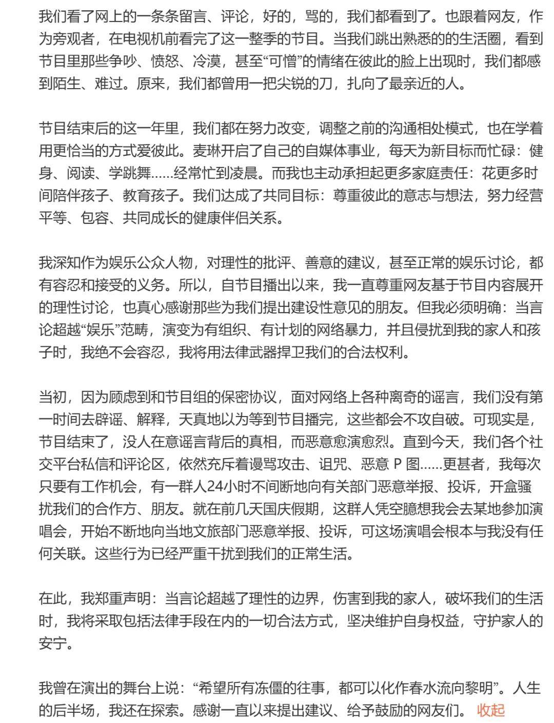 夫妻生活,如人饮水冷暖自知,不建议网友或者其中一方的粉丝入戏太深。