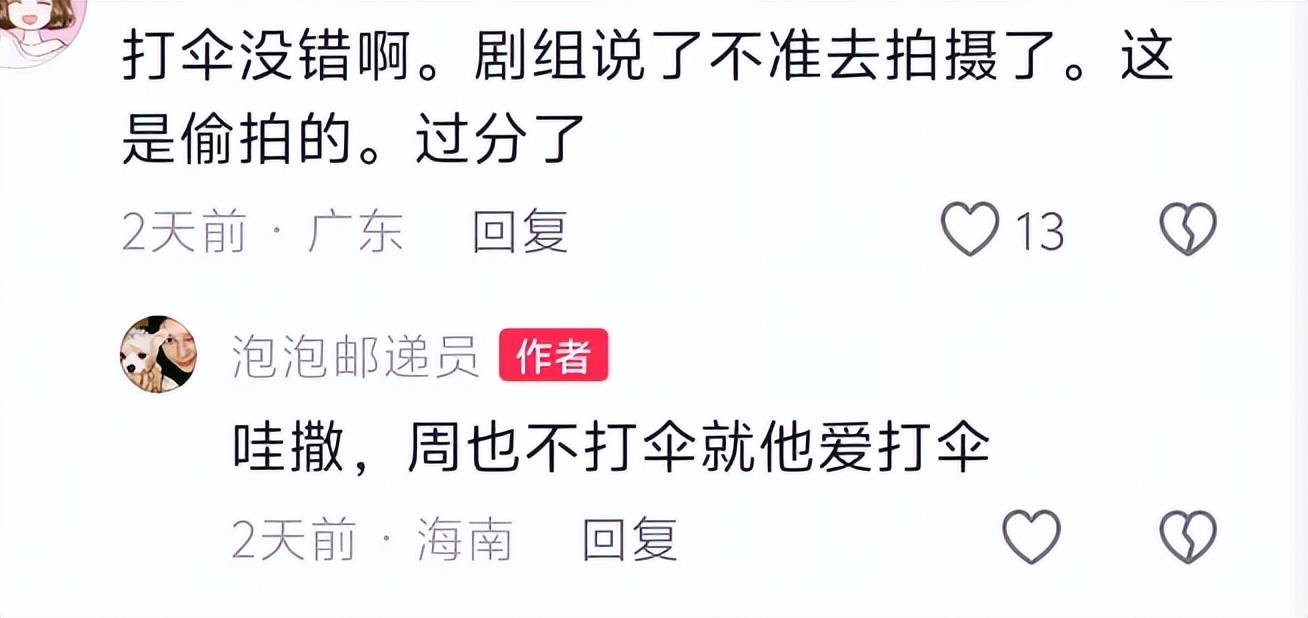 现在戏还没拍多少,网上就有网友发帖吐槽他双标、态度不好,网友自称自己是粉丝,被他的助理撑黑伞挡住了镜头,却看到他跟代拍有说有笑。