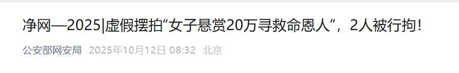 据“公安部网安局”微信公众号12日消息,近日,自媒体账号“宋雨霏”发布“悬赏寻找救命恩人”系列视频引发大量网民关注和讨论:账号“宋雨霏”从8月21日发布第一条视频后,一共发布了10余条长度不等的短视频,其内容均为讲述自己苦苦寻找“救命恩人”的过程,其中: