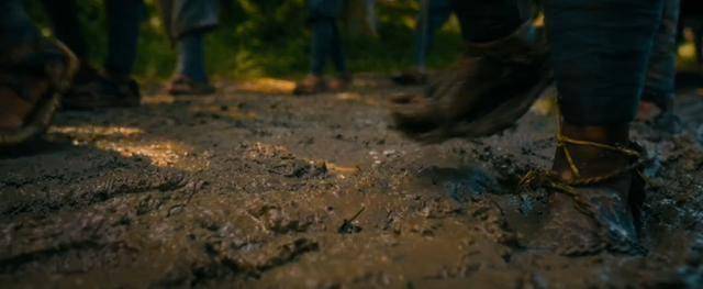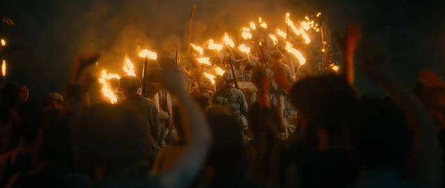预告片一开始就是红军队伍在泥泞小道上行军的特写镜头,那些由无数革命先烈组成的队伍,紧扎着绑腿穿着草鞋,爬过山趟过河,向燃着火把的方向而去。
