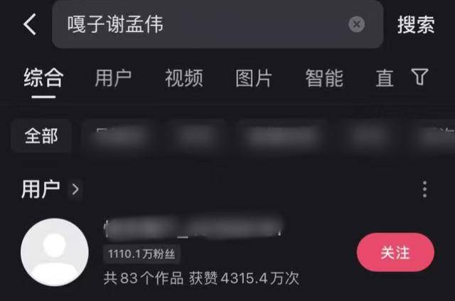 这是谢孟伟某手的账号,目前仍处于封禁状态,但是能看到粉丝量:1110万。
