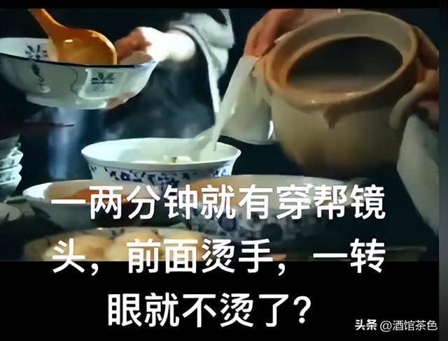而且场景中,还有前面明明是垫着毛巾类的东西端汤,镜头一转就不烫了。